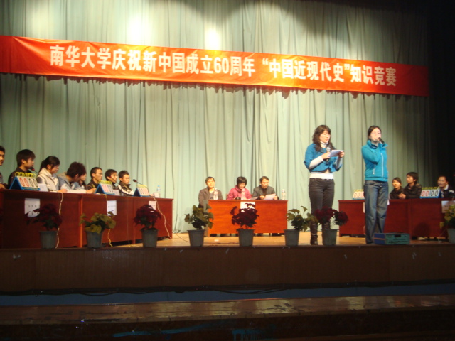 由马列部中国近现代史纲要教研室主办的庆祝中华人民共和国成立六十周年的“中国近现代史”知识竞赛于2009年11月27日下午在学校大礼堂隆重举行。