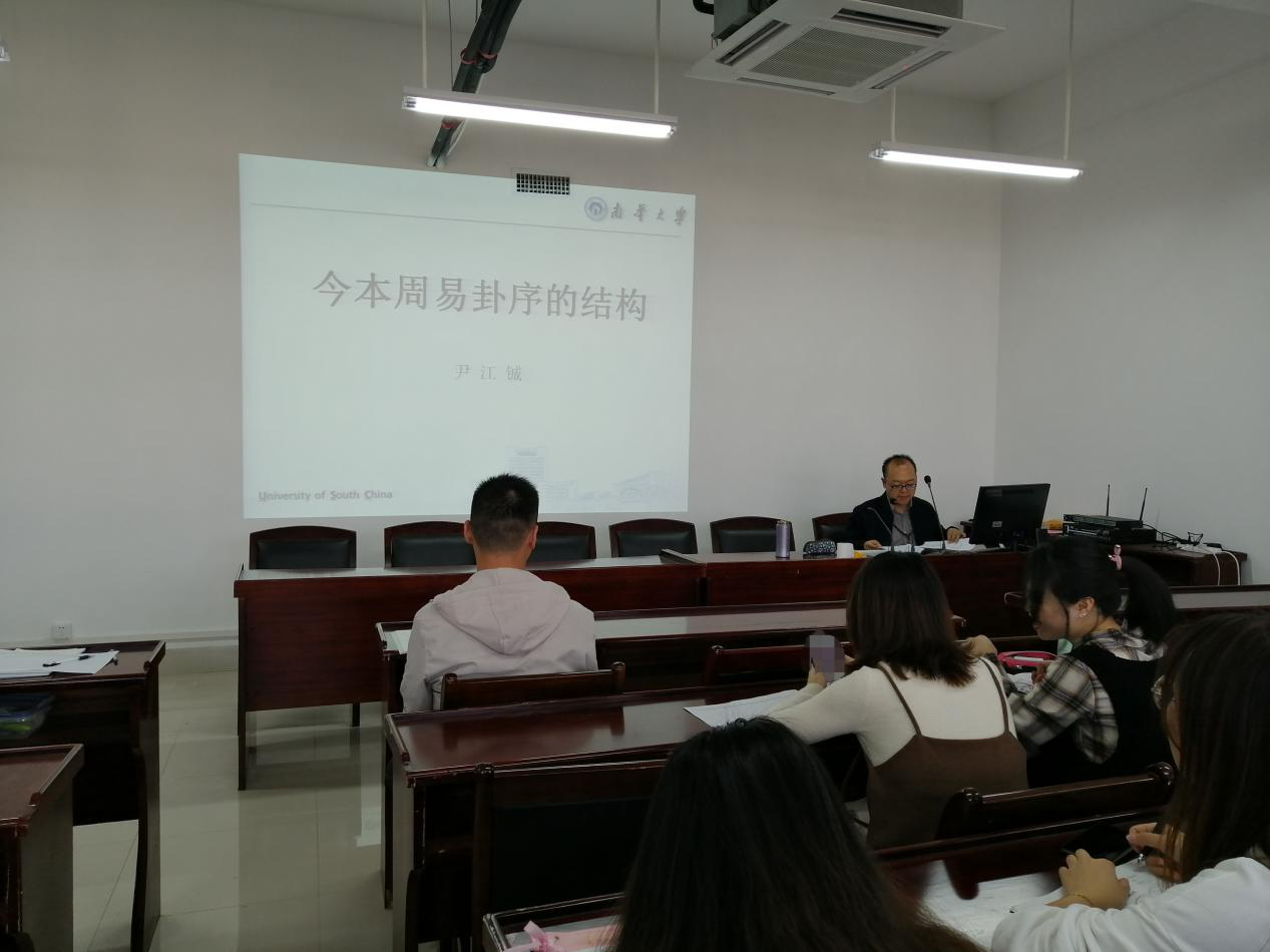 在正式开讲前,尹博士简要的介绍了《周易》的重要性、书中的重要问题以及周易“象、数、占”三部分,由此提出今天讲座要解决的主要问题是:周易卦序怎样排序?这样的排序体现了什么思想?
