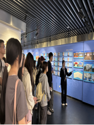 在带队老师和校史馆讲解员张静涵的组织带领下,同学们先是通过红湘、雨母两校区三维沙盘模型,系统了了解学校功能布局与发展规划。随后,师生们沿着校史脉络展开深度研学:从衡阳矿冶工程学院的肇基之始,到世纪之交中南工学院与衡阳医学院合并组建的跨越发展;从核科学与技术、基础医学等优势学科的建设成果,到历代南华人矢志报国的奋斗群像。通过核反应堆模型解析、多媒体互动体验等沉浸式教学,同学们切身感受到了“勤勉务实、甘于奉献”的南华精神。