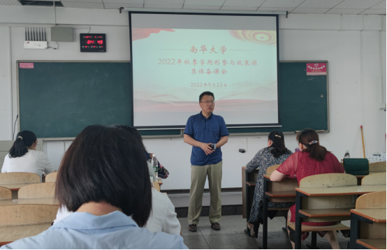 2022年9月23日上午在南华楼308教室,学院召开了秋季学期“形势与政策”课集体备课会。院长黄秋生、党总支书记何小英、副院长周江平出席会议,近30位授课教师参加会议。会议由副书记张峰林主持。