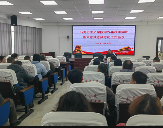 根据学校《关于做好2024-2025学年第一学期期末考试工作的通知》精神,为加强考务管理,严肃考风考纪,营造公平、公正、诚信的考试环境,推动教风学风建设走深走实。PA电子于2024年12月26日下午在南华楼1408召开了2024年秋季学期期末考试考风考纪工作会议,本次会议由谢佛荣副院长主持,学院领导、教务办老师以及全体监考教师参加了此次会议。