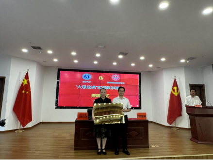 仪式第三项由何小英书记和黄彪部长共同签订PA电子“大思政课”实践教学基地(夏明翰党性教育基地)共建协议并进行授牌。
