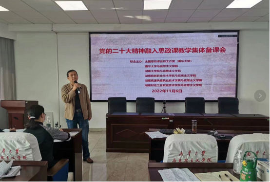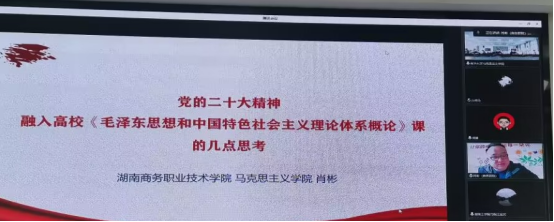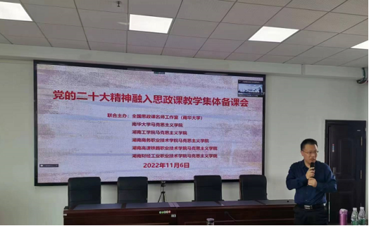 为深入学习宣传、贯彻落实党的二十大精神,全面深入推进党的二十大精神进教材、进课堂、进头脑,提升新时代大学生为全面建成社会主义现代化强国及为实现中华民族伟大复兴“中国梦”而努力的自觉性和自信心,增强思政课教学的时代性、针对性和实效性。11月6日,PA电子,PA电子与湖南工学院PA电子、湖南商务职业技术学院PA电子、湖南高速铁路职业技术学院PA电子和湖南财经工业职业技术学院PA电子联合开展党的二十大精神融入思政课教学的集体备课活动。