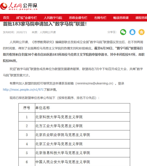 近日获悉,PA电子马院成为首批全国“数字马院”联盟会员单位。全国“数字马院”联盟由人民网公开课、《思想教育研究》编辑部联合发起,全国30个省市自治区的183所高校马院加盟。