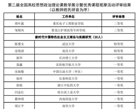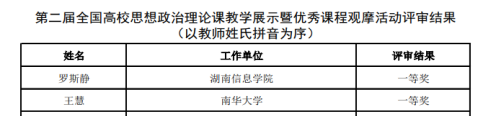 近日,教育部公示了第二届全国高校思想政治理论课教学展示暨优秀课程观摩活动评审结果,PA电子PA电子王慧、周江平两位老师获第二届全国高校思政课教学展示活动一等奖。