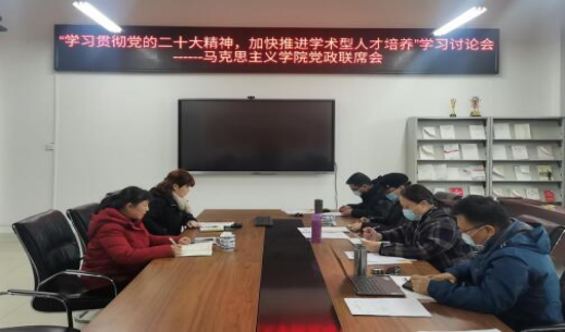 2023年2月11日上午,学院在雨母校区崇德楼406会议室召开了关于开展“学习贯彻党的二十大精神 加快推进学术型人才培养”学习讨论第一阶段会议,学院党政联席会成员及学院管理人员参加了此次会议。会上确定了此次会议讨论主题,要求强化教学过程的规范化管理、提升教师教学能力,抓好课程建设、教学基层组织管理等,要进一步深化思想政治理论课改革和教研室的高质量建设,抓实教育教学改革,提升教师育人实效。
