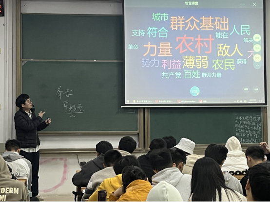 课堂上,廖灵丹老师以国民党新军阀统治的建立为切入点,分析国民党在全国统治的性质,引导学生思考“中国共产党为什么要继续革命?”这一问题。通过情景再现式的生动讲解,廖老师结合视频资料展现了大革命失败后中国革命的实际情况,帮助学生更好的理解了中国革命道路开辟的必要性。课堂上,廖老师多次提出有深度的问题,激发学生极大的学习兴趣和互动热情,使课堂充满活力。他的讲授富有感染力和幽默感,在精确地阐述理论,带领学生一同梳理历史脉络,引发了学生的思考和共鸣。通过学习通进行了主题讨论活动,学生纷纷分享了自己的观点,课堂气氛热烈。课堂的“学生中心”教育理念得到了充分体现。