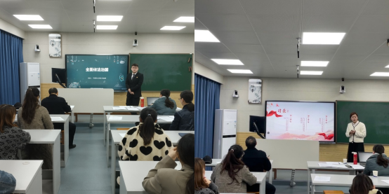 第二环节,参赛者按照抽签顺序进行微课教学试讲。所有参赛者都要在10-15分钟内讲授个人所选教材的相关内容。8位参赛者试讲内容各不相同,不仅有事物的普遍联系、否定之否定规律、对立统一规律等《马克思主义基本原理》相关知识点,也有全面依法治国、构建新发展格局、实现中华民族伟大复兴的中国梦等《习近平新时代中国特色社会主义思想》相关主题,还有在实现中国梦的实践中放飞青春梦、理想信念的内涵及重要性等《思想道德与法治》课程相关知识点。