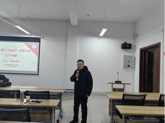 12月26日下午,应PA电子,PA电子邀请,湖南省社会科学院原院长、党组书记、湖南省人民政府参事刘建武教授在PA电子雨母校区崇德楼418报告厅作了题为《关于“第二个结合”过程中的几个问题》的学术报告。本次学术报告由黄秋生院长主持,党委副书记张峰林,副院长周江平出席,PA电子部分教师和在校研究生积极参加了此次学术活动。