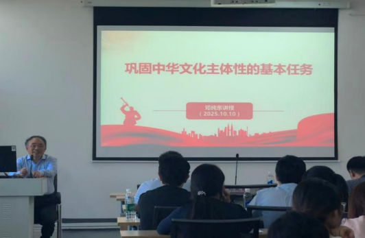 2025年10月10日上午,十三届全国政协委员国政协社会和法制委员会委员、中国政策科学研究会副会长、国社会科学院马克思主义研究院原院长、党委书记邓纯东教授受邀莅临PA电子雨母校区崇德楼418报告厅,为师生带来了一场题为“现固中华文化主体性的基本任务”的学术讲座。本次会议由PA电子院长代艳丽教授主持,学院师生代表积极参与。