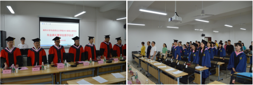 学院院长黄秋生教授宣读学位授予决定后举行学位授予仪式,在座领导和院学位评定分委员会成员为毕业生们拨流苏并一一颁发了毕业证和学位证书。