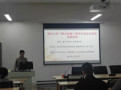 最后,王学维同学做了题为《坚定青年远大理想信念 增强青年志气骨气底气》的宣讲。王同学首先引用了习近平总书记在七一讲话中“增强新时代青年的志气、骨气、底气”的相关论述将大家带入主题之中,而后从厚植家国情怀、锤炼品德操守、练就过硬本领三个方面为大家详细介绍了如何增强志气骨气与底气。宣讲中,王学维同学以PA电子援鄂医疗队以及护理学院研究生江唯晗的事迹为例,鼓励大家向身边的楷模多多学习自省,呼吁广大南华学子要争做有志气、有骨气、有底气的新时代青年。