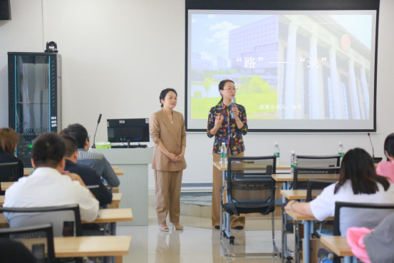 讲座开始,张峰林副书记首先对两位校友重回母校为师弟师妹们作分享讲座表示欢迎与感谢。接着,谢英校友结合自己的工作经验作了题为《“路”——“录”》的就业指导讲座,她围绕公务员的发展历程和变革趋势、公务员录取的相关流程、公务员考试环节、体检、考察等一系列内容做了详细的分享。尤其是针对公务员考试环节,谢英校友结合自己丰富的工作经历给同学们做了极其珍贵且有价值的指导。谢英校友语重心长地强调,考公一定要多关注时事,多阅读官方权威媒体评论员文章,多注重语言表达能力的锻炼。她还为同学们普及了工伤预防的概念、作用和工伤事故的危害。