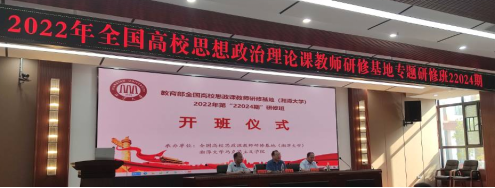 为贯彻中央宣传部、教育部关于在高校思政课中进一步加强习近平新时代中国特色社会主义思想教育教学工作的最新精神,坚持不懈用新时代党的创新理论武装思政课教师头脑,充分发挥思政课立德树人关键课程作用,湘潭大学承办的2022年全国高校思想政治理论课教师研修基地专题研修班22024期在湘潭大学永雄楼学术报告厅举行,会议采取线下的形式进行。来自全省多所高校的45位马原骨干教师踊跃参会。9月14日上午,学院院长黄秋生教授受邀参加并作主题发言。