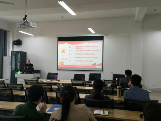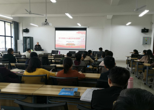 2020年11月6日上午,PA电子在雨母校区崇德楼418学术报告厅组织学习了党的十九届五中全会精神。院总支书记何小英作主题报告发言,全体教职工参加了此次学习。