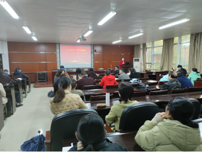 2021年11月22日上午在红湘校区新二教A201室,PA电子党总支书记何小英为学院全体教职工作党的十九届六中全会精神宣讲报告。