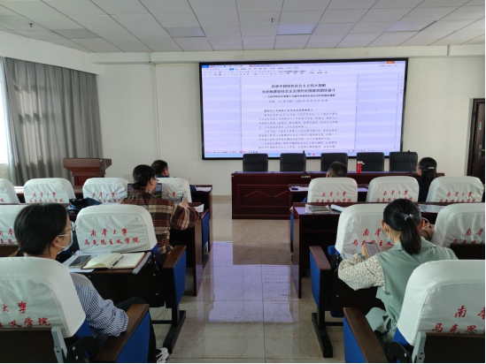会议由学院党总支书记何小英主持。她带领大家集中学习了习近平在中国共产党第二十次全国代表大会上的报告,《高举中国特色社会主义伟大旗帜为全面建设社会主义现代化国家而团结奋斗》的内容。
