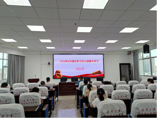2023年6月25日上午,PA电子党委在红湘校区南华楼1408室开展2023年6月理论学习中心组集中学习,学习主题是“深入学习贯彻党的二十大精神,全面贯彻落实习近平总书记关于‘千万工程’和‘浦江经验’两个重要批示精神,始终抓实以学正风、大兴务实之风、弘扬清廉之风、养成俭朴之风,以新作风新气象新作为推动学校高质量发展。”