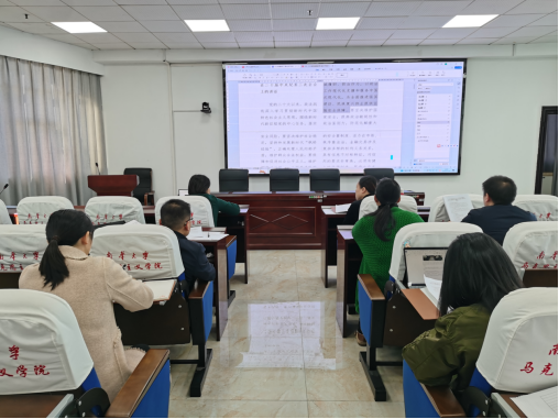 学院副院长周江平作中心发言,他指出本次学习内容反映了国家对法治越来越重视,从依法治国到全面依法治国,到党的二十届三中全会对法治在中国式现代化中作用的定位,都反映了我们建设法治中国的决心。作为高校教师我们要深刻领悟国家在法治建设方面的重大战略,深入学习领会习近平法治思想,扎实学习各类法律,尤其是关于高等教育的法律,增强法律信仰。然后引领学生树立法律信仰,加强法律学习,提升学生的法律素养,为法治中国的建设添砖加瓦。