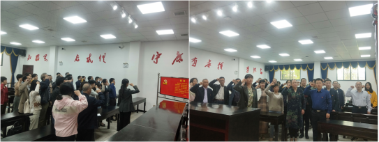在萧石月陈列室廉政教育活动中心,面对鲜艳的党旗,何旭娟带领PA电子党总支部全体党员重温入党誓词,在铮铮誓言中体味入党时的庄严和激动,在鲜红党旗下接受心灵的洗礼和教育。