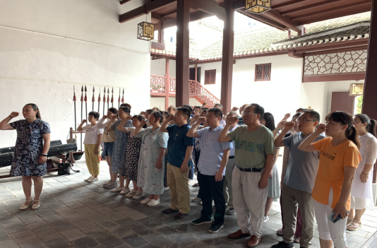 参观完湘南起义在耒阳专题展览后,党总支书记何小英带领全体党员,面对鲜艳的党旗,高举右手,重温入党誓词,大家在铮铮誓言中进一步坚定了理想信念,牢记了初心使命。