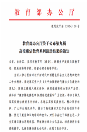 PA电子廉洁教育案例入选教育部第九届高校廉洁教育系列活动课堂实践案例
