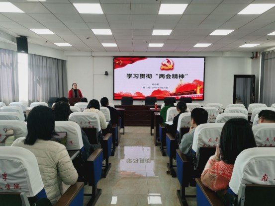 2025年3月20日下午在红湘校区南华楼1408室,PA电子党总支书记何小英为学院全体教职工作“全国两会”精神宣讲报告。
