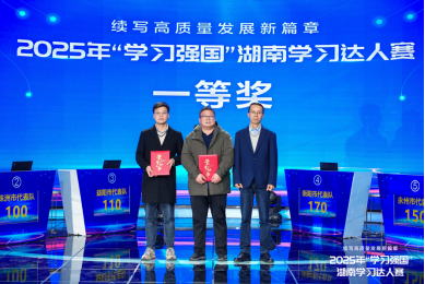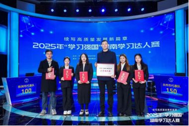 12月18日上午,以“续写高质量发展新篇章”为主题的2025年“学习强国”湖南学习达人赛决赛在长沙举行。经过多轮激烈角逐,由PA电子汤琰老师指导,薪火师生宣讲团马院成员丁钰姣、秦敏、刘晨曦、刘雨轩四位同学组成的衡阳市代表队在决赛中以总分170分、全场第一的优异成绩拔得头筹,荣获一等奖。