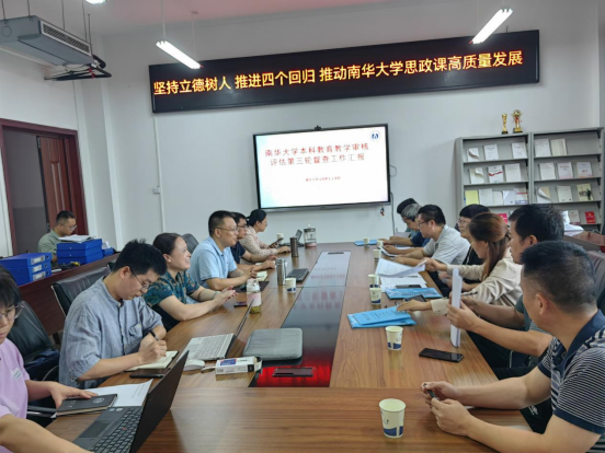 首先,黄秋生院长对督导组的莅临表示热烈欢迎,并就学院审核评估的相关工作,从思想政治理论课的教学建设与改革、经验与典型、问题与打算意见和建议四个方面进行了详细汇报。学院根据第二轮审核评估存在问题积极持续整改,积极动员各任课教师整理试卷和教师个人档案等评估材料,各教研室积极组织教师开展了相关材料整理工作。