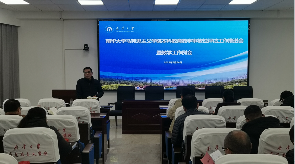 会上,学院副院长谢佛荣就迎接审核性评估工作、学院教学相关文件制度的修订、湖南省第九届大学生思想政治理论课研究性成果展示实践活动、毛泽东思想和中国特色社会主义理论体系概论教研室与习近平新时代中国特色社会主义思想概论教研室关于两门课程错开排课及2023版教材的集体备课、教学大纲、教案讲稿更新等工作进行了布置。副院长谢佛荣指出,今年下半年,学校将迎接教育部本科教育教学审核评估,教研室和老师要深刻认识本科教育教学审核评估工作的重要性,在教学中全体教师要加强教学管理,抓好课堂教学质量提升工作,要求各系室加强相关教研室相关制度的修订和整理,抓好无纸化考试试卷工作的规范存档工作。